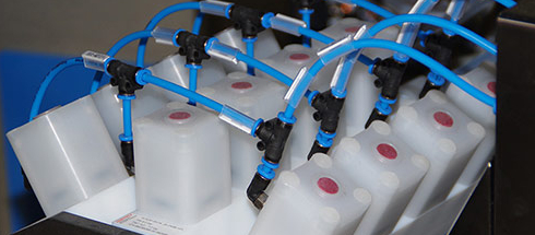 - Коли кожен контейнер опиняється під багатопортовим клапанним блоком, здійснюється дозування надчистої води в точно визначеному об’ємі.