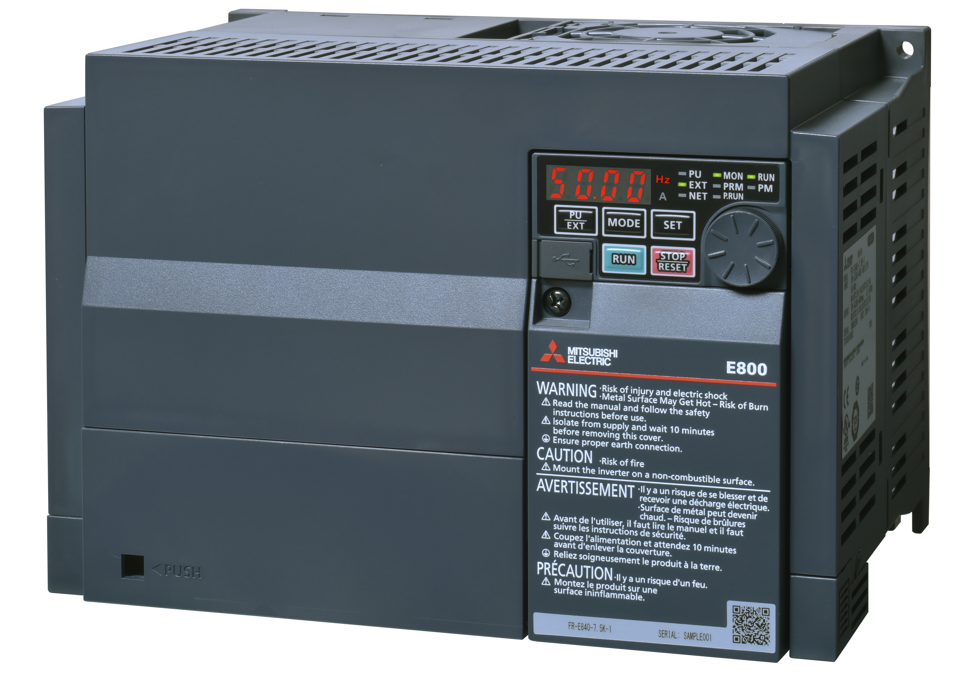 Частотні перетворювачі серії FR-E800 — це сучасні інтелектуальні пристрої керування двигунами, які поєднують високу продуктивність, енергозбереження та цифрову інтеграцію. Вони ідеально підходять для застосування в автоматизованих системах, де важливі точність, надійність і безпека.