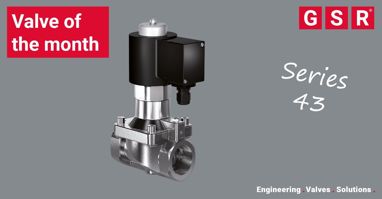 Головна новинка цього місяця: двоходовий електромагнітний клапан серії GSR 43 – надійне рішення для складних умов експлуатації з газоподібними та рідкими середовищами.
